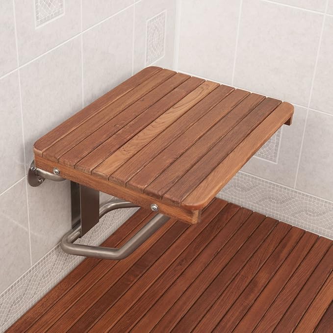 Teak Wall Mounted Shower Bench Seat | 24" W x 16" D | Plantation Teak | ADA Compliant
