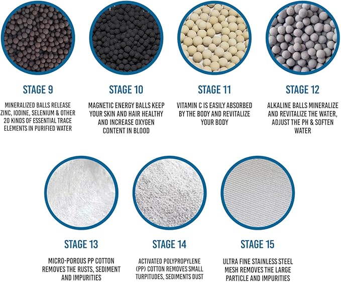- Multi-Stage Filtration: These shower filters to remove chlorine and heavy metals have 15 distinct filters water passes through. This filtering process allows only the cleanest and purest pH balanced water to flow from the shower head water filter.