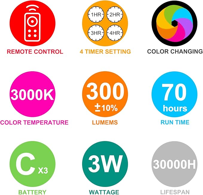 - [Timmer Function] -- You can set the shower light to turn off automatically in 1/2/3/4 hours by pressing the timmer buttons on the remote, save energy and prolong battery life.