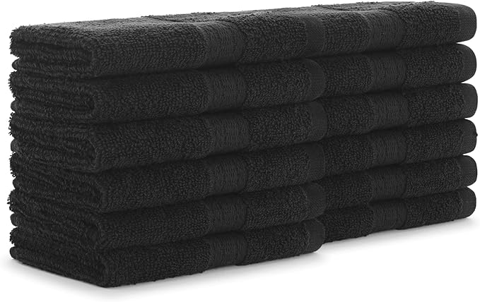 Arkwright True Color Solid Wash Cloths - Soft 100% Cotton Washcloths 12 Pack - Lightweight 475 GSM, Absorbent & Quick Dry for Face and Body, 12 x 12 in, Black