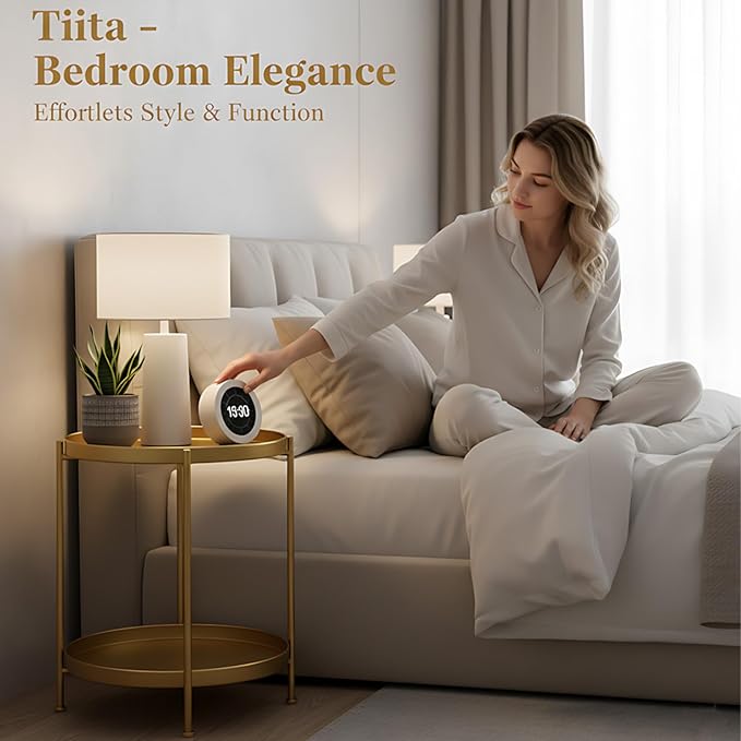Tiita Round End Table Mental 2-Tier Side Table Nightstand/Small Iron Tables Accent Coffee Table for Living Room Bedroom Office Small Space