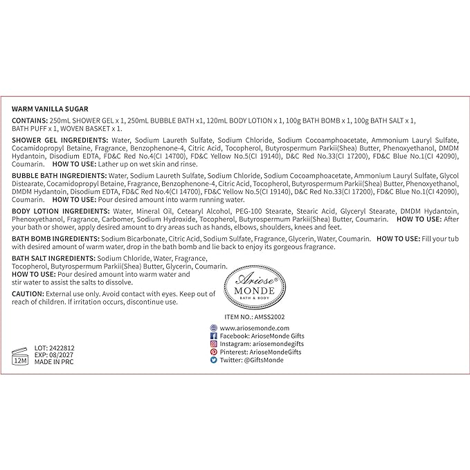- NATURAL INGRIDENTS: All the Ariosemonde Spa sets are cruelty and praben free, We do not test our products on animals. Theyโre made from natural ingredients, they also give off a natural and gentle scent