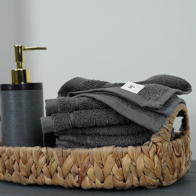 Tens Towels Pack of 12 Washcloths, 12 x 12 Inches, Lighter Weight, Quick to Dry, Super Soft & Absorbent, Gentle Face Towels, Hotel Quality, Perfect for Bathroom, Gym, Spa (Dark Grey, 12 Pack)