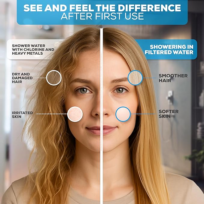 - Immediately feel the impact that filtered water has on your wellbeing; Keep hair and skin in good condition with filtered water; ‘Hard Water’ which contains minerals and impurities will become ‘softer’ after passing through our shower head filter for hard water