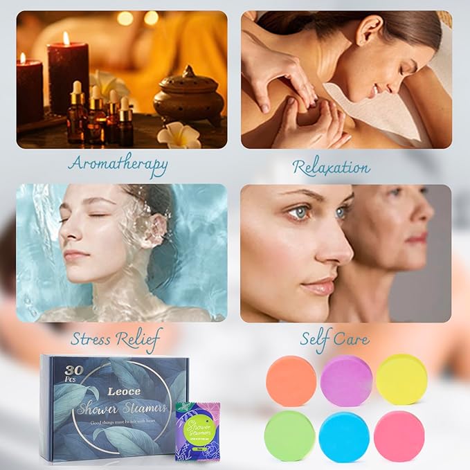 - IDEAL GIFT SET FOR WOMEN AND MEN: We all love beautiful things. This shower steamer tablet gift set with this tantalizing box is the ideal relaxation, home spa, skincare, self care gift set to your close friends and confidante at Parties, Christmas, Birthday, Valentine’s Day, and Mother’s Day. It is also the perfect gift for your lover, wife, mom, parents, girlfriend, and boyfriend. As aromatherapy shower steamer, it is a good selection for wiping away strange smells also.