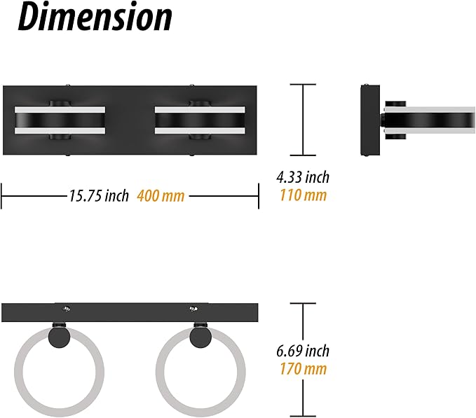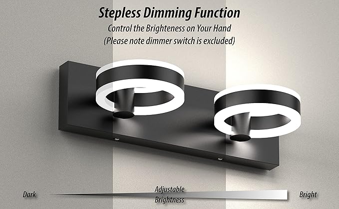 - [4000K Color Temperature] This black bathroom light fixture has an average lifespan of up to 50,000 hours. The vanity light is powered by advanced TRIAC dimming technology, which only works when connected to a dimmer (this product does not have a dimming function and does not include a dimmer switch or remote control).