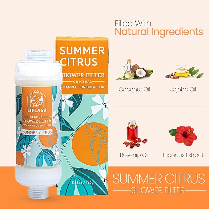 LIFLASH Vitamin C Shower Filter for Hard Water, Aromatherapy Softener Purifier, Help with Softer Skin and Hair Enhancement, for Universal Output Showerhead, Easy Installation (SUMMER CITRUS)