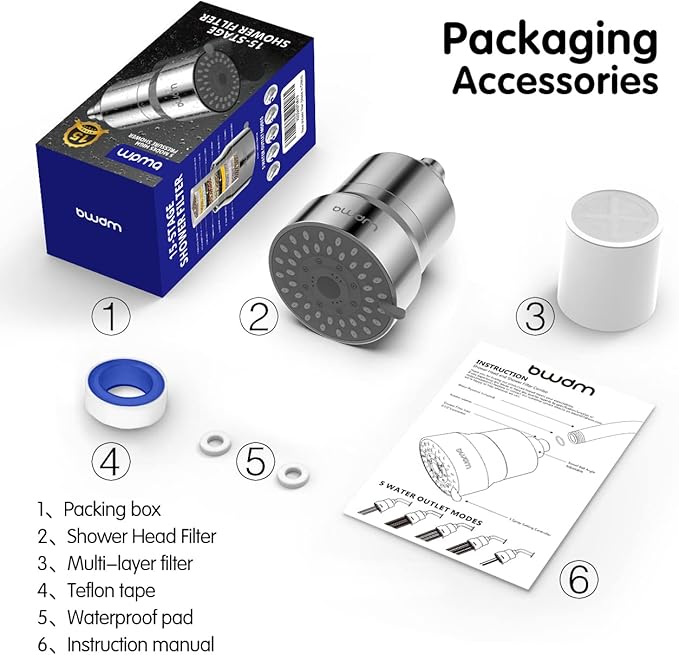 - PURIFIES YOUR WATER, PERFECTS YOUR SKIN – BWDM shower head high pressure shower filters provide your shower with ideal water for softer and cleaner skin hair and stronger nails.15 stage -filtragion, Quickly, easily and naturally eliminate all the yuck in city water, hard water and well water systems.