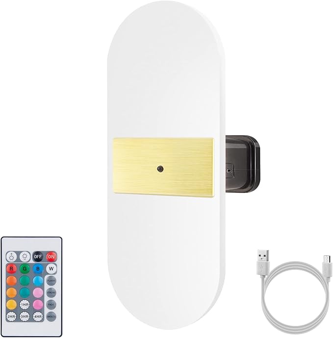 BIGMONAT USB Rechargeable Night Light, Wireless Wall Light, Color Changing Mood Light, Remote Controlled Wall Sconce, RGB Lamp for Hallway Bathroom Kids Bedroom
