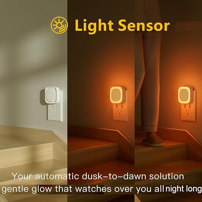 - Compact & Outlet-Friendly: This sleek wall plug-in night light fits snugly against the outlet, so your second socket stays free for chargers or other devices. Its modern design blends seamlessly with any home decor.