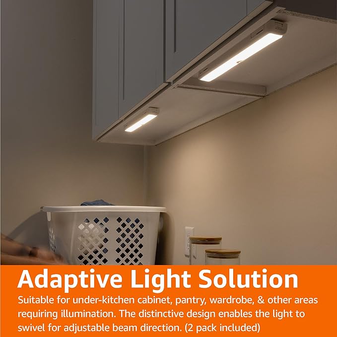 Amazon Basics LED USB/Battery Operated Light Bar, Swivel Motion Sensor, Stick on Lights, 250 Lumens, 12 Inches, Under Cabinet Lighting, Closet, Kitchen, 2 Pack, White