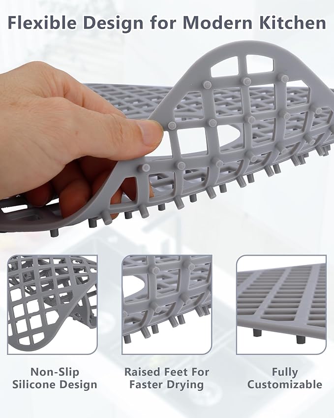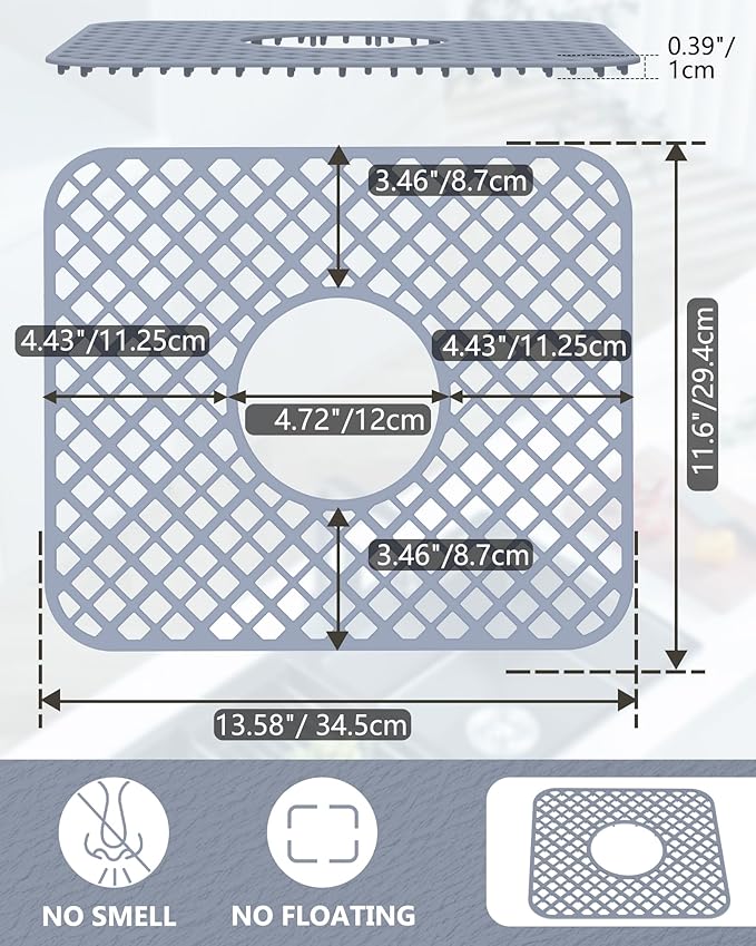 - Multi-Functional Kitchen Essential - This silicone sink protector doubles as a versatile kitchen helper.Use it as a: Non-slip pad for cutting boards; Heat-resistant trivet for hot pans; Cushioned mat for food prep; Stable base for pet bowls. The standard 13-9/16" x 11-5/8" size fits most sinks. Lightweight yet sturdy, it transitions easily between sink, counter, and stove. The perfect all-in-one kitchen sink mat for modern households.