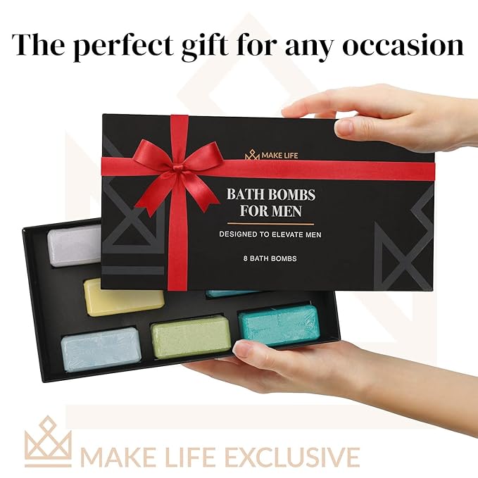 - 👑MAKE LIFE EXCLUSIVE GUARANTEE! - Enjoy a premium bath experience with these bath bombs, designed specifically with men in mind. Crafted with carefully selected scents, they provide a refreshing and aromatic experience for your relaxation time.