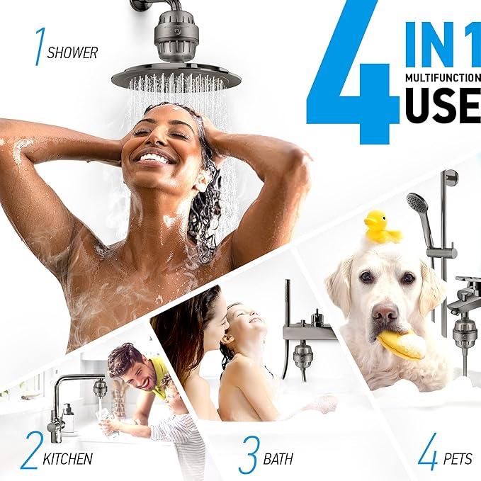 - EFFECTIVE shower filters to remove chlorine and fluoride, heavy metals and other sediments. This shower head water softener makes bathing KIDS and PETS pleasant and SAFE. Our Vitamin C and E shower filter keeps eczema, dry skin and dandruff at bay!