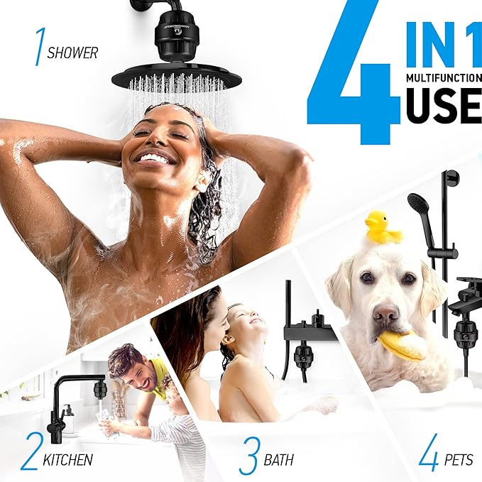 - FULL COMPATIBILITY: Our EASY to install universal shower filters can be placed on wall-mounted, handheld, rainfall and combo shower heads for versatile home use. They help to remove rust and iron