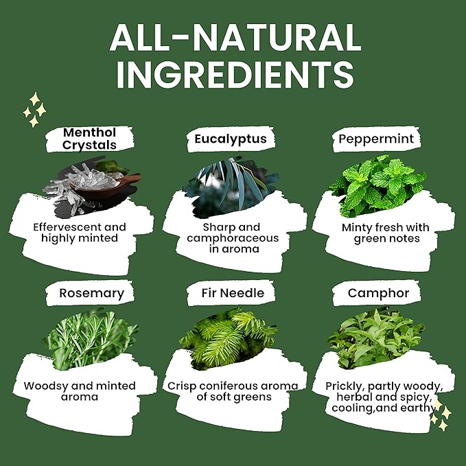 - Natural Sinus and Congestion Relief: Eucalyptus oil, menthol crystals, peppermint oil, Siberian fir needle, and rosemary oil provide overall respiratory support to naturally soothe clogged airways and are supported by 4 other essential oils targeted at promoting clearer breathing. Our Breathe Easy shower bombs support respiratory health and can aid in relief when you are down with sniffles, headaches, migraine, or congestion