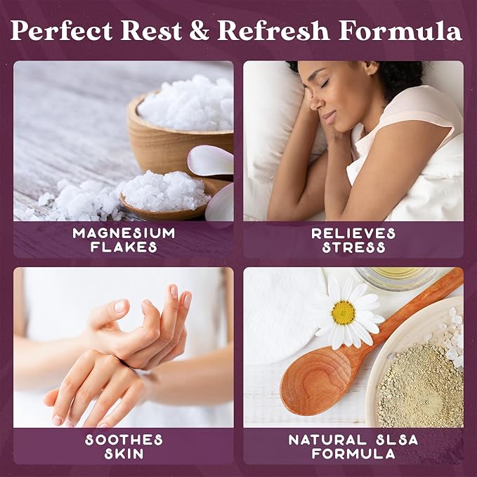 - BATH BOMBS: Relax and unwind with the Bath-to-Bed Bath Bomb! Enhanced with ground magnesium flakes and chamomile flowers this natural bath bomb delights the senses with the calming fragrance of chamomile and vanilla. Our magnesium bath bombs relax the body, soothe sore muscles, and promote sound sleep.