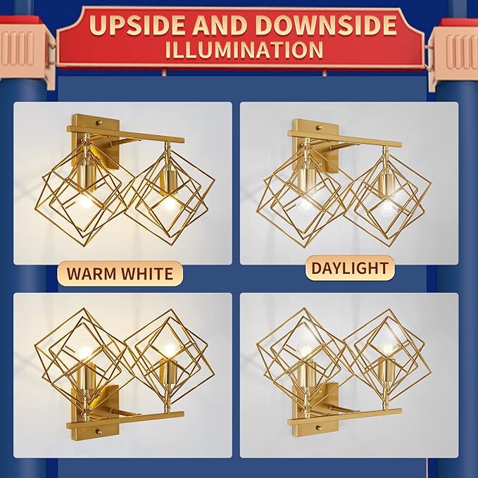 - Rotatable Lampshade:This modern bathroom light fixture features a classic appearance highlighted by unique rotatable cube lampshades, it can be rotated every cube. You can adjust it as you prefer,, which is convenient.