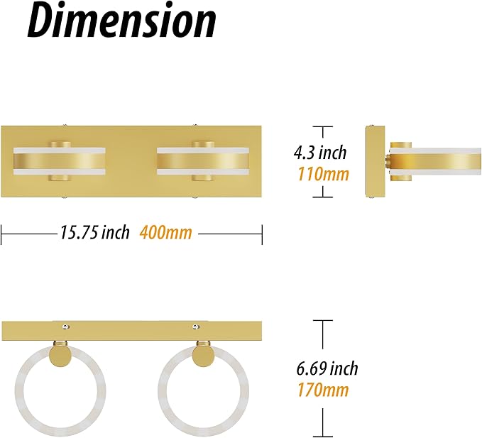 - [4000K Color Temperature] This Gold bathroom light fixture has an average lifespan of up to 50,000 hours. The vanity light is powered by advanced TRIAC dimming technology, which only works when connected to a dimmer (this product does not have a dimming function and does not include a dimmer switch or remote control).
