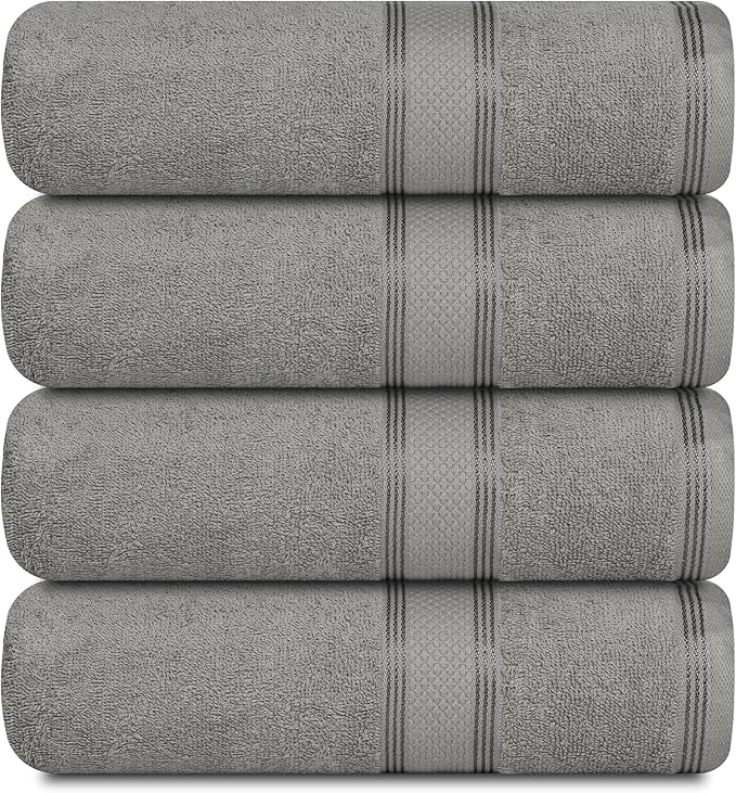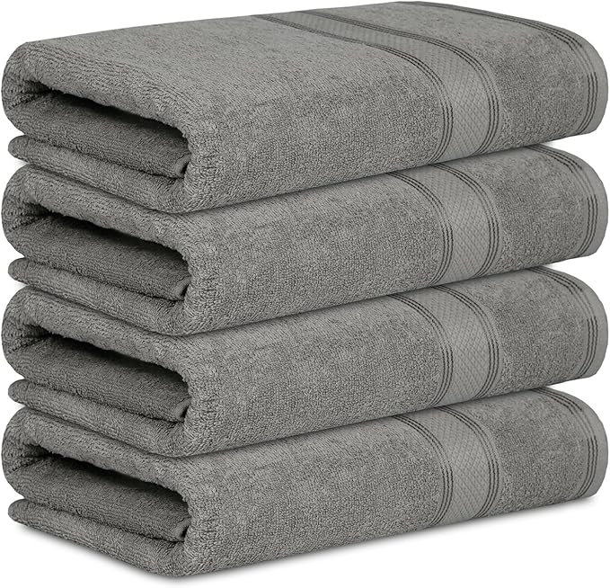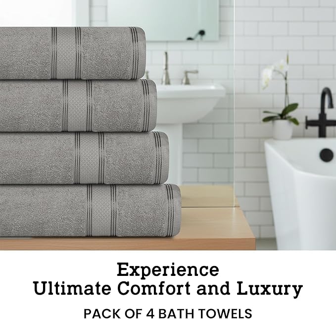 Casa Lino Silver Grey Bath Towels Set of 4 (54" x 27") - Large Bathroom Towel Set - 100% Cotton Towels for Bathroom - Highly Absorbent & Quick Dry Bath Towel Multipack - New Apartment Essentials