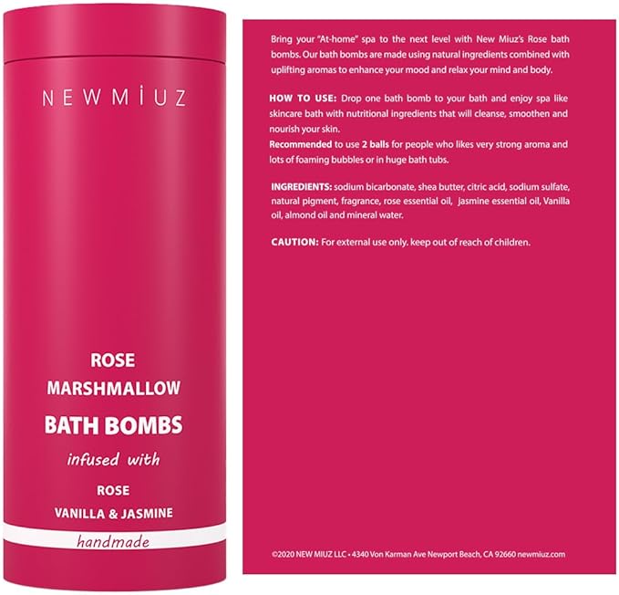 - LUXURY BATH BOMBS : Immerse yourself in a soothing bath with the enchanting scents of the jasmine rose bath bomb and Marshmallow. Experience an aromatic floral journey that will transport you to an oasis of well-being and relaxation.