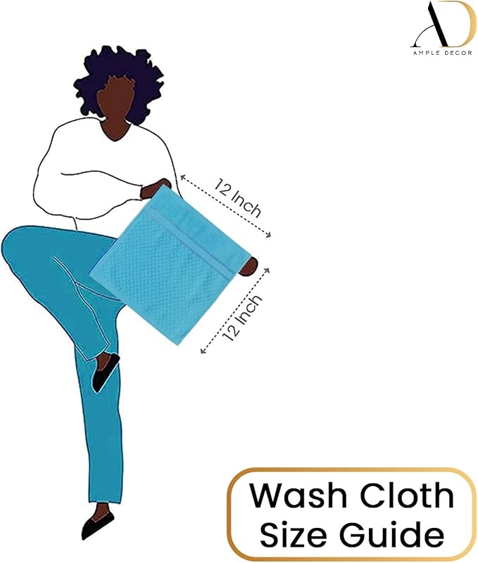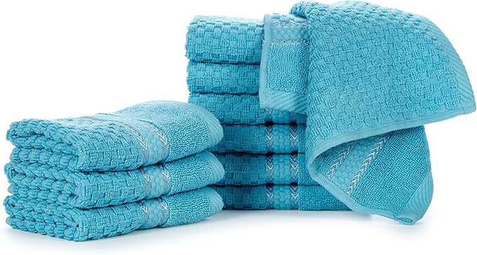 Ample Decor Sky Blue Wash Cloth Set of 10 100% Cotton - Quick Dry, Highly Absorbent, Popcorn Textured - Mulaayam Collection - 12 X 12 Inch