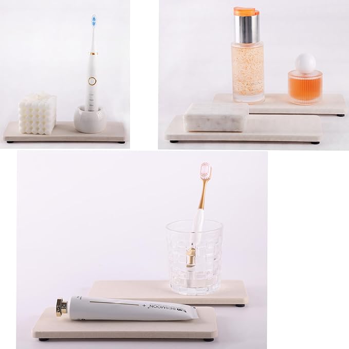 - Made from natural Diatom mud and plant fiber, small holes within diatomite enable it have amazing water absorption. They could absorb water and gets dry in a few minutes. It makes the Bathroom Counter top more dry and tidy.