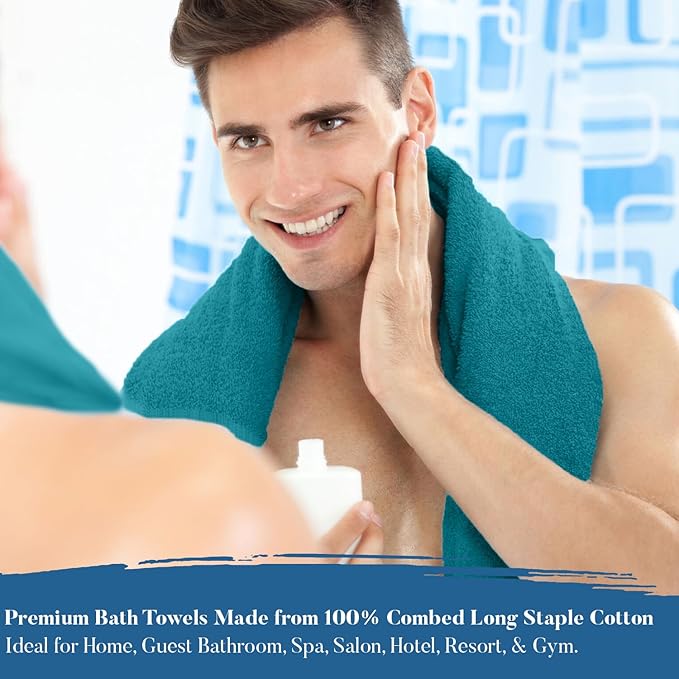 DAN RIVER Bath Towels Set of 4, 27 x 54 Inches, 100% Cotton, Larger & Lighter Weight, Quicker to Dry, Super Soft and Absorbent, Ideal Luxury Bath Towels for Daily Use, Teal