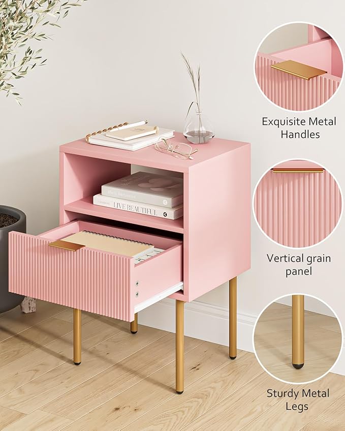 - Embrace an Modern Vibe:Mixing classic pink with matte gold, graceful lines,this nightstand emits an modern vibe in your bedroom. It can also catch eyes as a side table or end table throughout the home,adding elegance to home life.