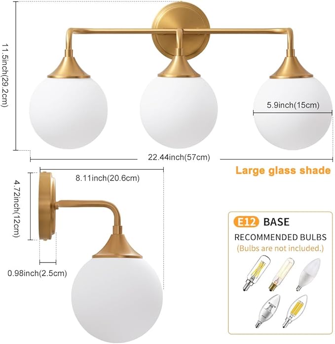 - Unique Design: The gold vanity light adopts a horn shaped lampholder paired with a milky white circular glass lampshade, combining modern and retro styles to add a sense of design to the room