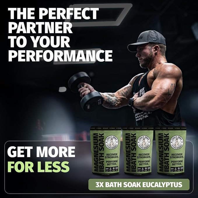 Coach Soak Recovery Bath Soak - Alternative to Epsom Salt Bath Soak - Fast-Absorbing Pure Magnesium Flakes with 21 Minerals, Bath Salts & Essential Oils - 9 lb (3 Pack) - Eucalyptus Tea Tree