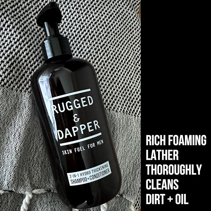 - 2-in-1 Solution: Streamline your shower with our powerful Men's Hydrating Thickening Shampoo + Conditioner. This dynamic formula deeply cleanses, balances moisture, visibly thickens, and revitalizes hair—all in just one step. It's the best shampoo to simplify your daily routine without compromising on performance