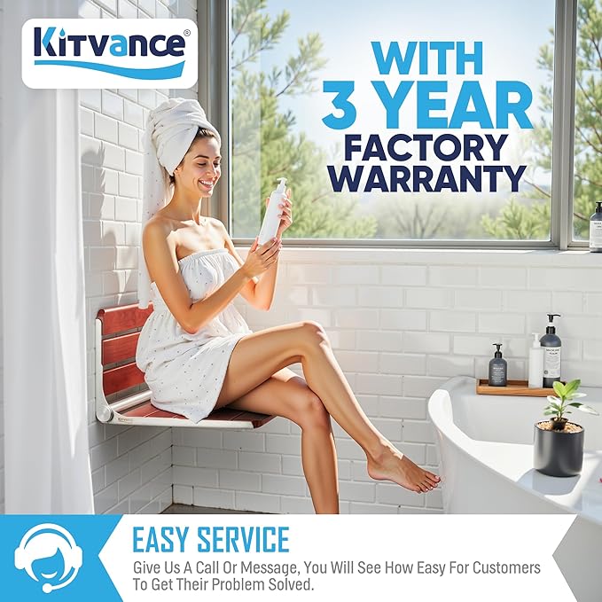 - 🛡️【Versatile Application & 3-Year Support】Beyond the shower, our folding teak shower seat for inside shower enhances various spaces like bathrooms, entrances, locker rooms, saunas, or hallways. Plus, backed by a 3-year Factory Technical Support for your peace of mind