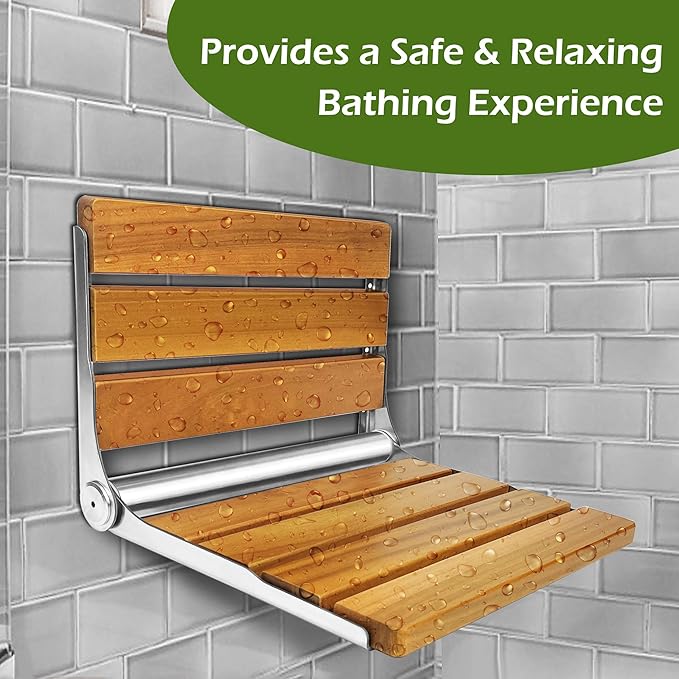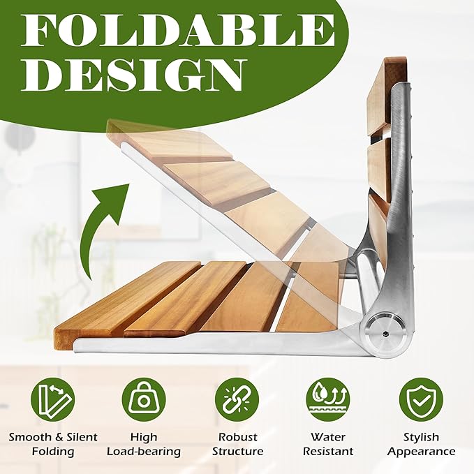 - 【Enhanced Comfort and Accessibility】Our wall-mounted foldable teak shower seat is designed to elevate your shower experience by providing a comfortable and relaxing seating option. This seat is especially beneficial for individuals with limited mobility, offering a secure and supportive place to sit while bathing.