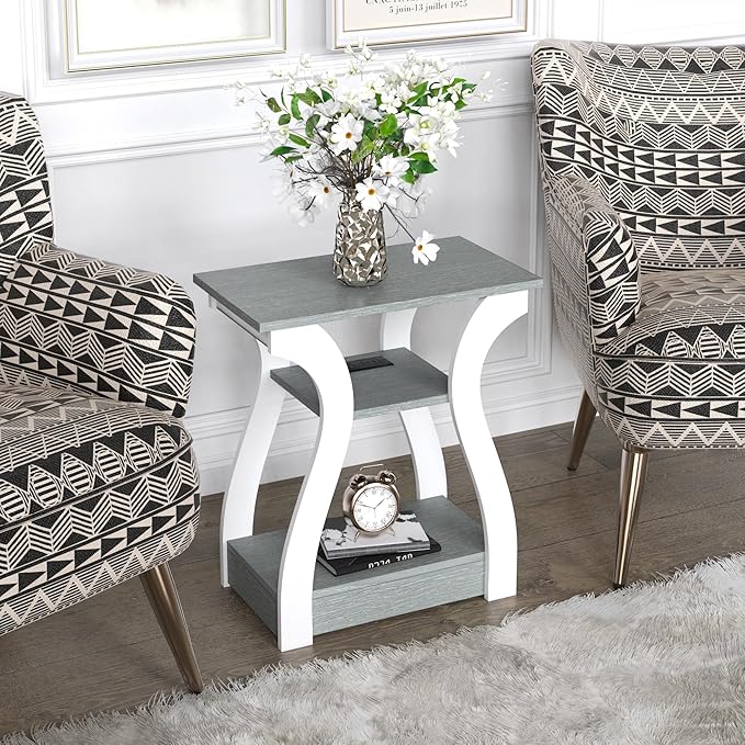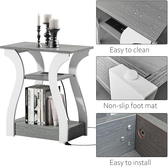 End Table with Charging Station, Side Table with USB Ports and Outlets, 3 Tier Nightstand Sofa Table for Small Spaces, Beside Table with Storage Shelf for Living Room, Bedroom