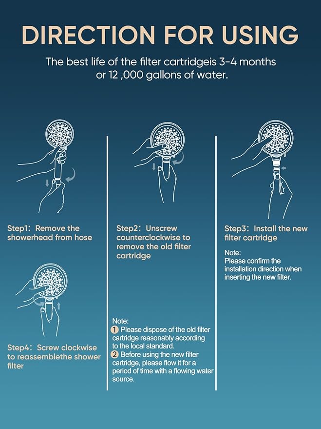 - Standard: Features a 20-layer filtration system that effectively removes chlorine and heavy metals from water. Recommended replacement cycle: 3-4 months (the specific lifespan depends on the water quality in your area).