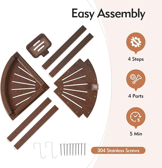 - 【HDPE Material】Made of High-density polyethylene (HDPE) and stainless steel hardware, it will not crack, scratch, rust, or fade over time. The triangular structure and the thickened legs ensure the stability of the corner shower bench. In addition, the surface is designed with faux wood grain, making it sturdy and durable while maintaining a vintage and elegant aesthetic.