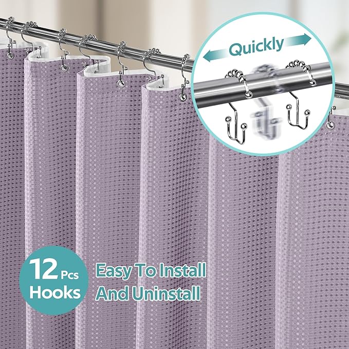 - Products Include: 1 Waffle Shower Curtain, 1 Shower Curtain Liner, 12 Double-sided Hooks. (Total 14 PCS)