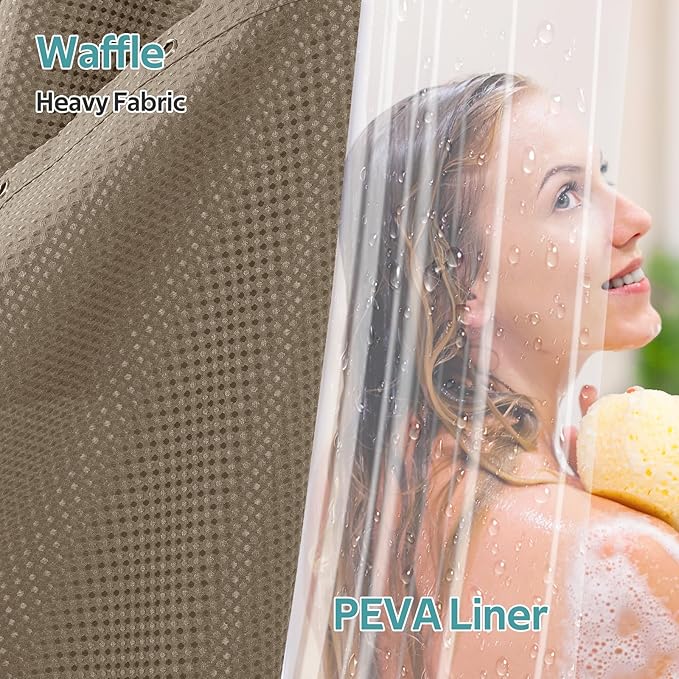 - Products Include: 1 Waffle Shower Curtain, 1 Shower Curtain Liner, 12 Double-sided Hooks. (Total 14 PCS)