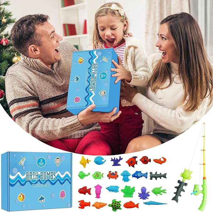 - SEASHELL BATH BOMBS - Each bomb ball contains a different surprise , and the gift includes a fishing game! It will make bath time happy and exciting, so much fun that your child will love it.