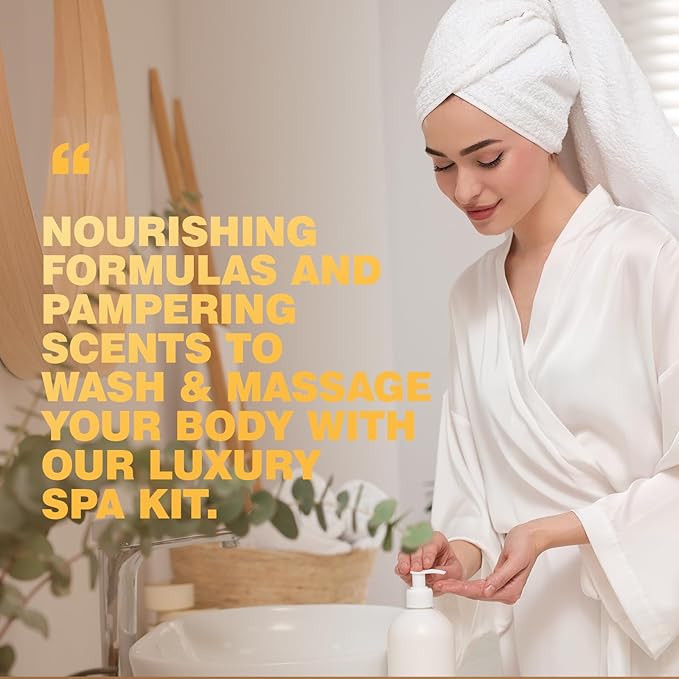 - Pampering home relaxation time and benefits for your skin and body. Lock the door, light the candles, put on some mood music and sink into a luxuriously relaxing spa evening all to yourself. The spa gift baskets bath gift box for people infused with Almond essential oils which keep the skin Moisting and Nourishing Treat yourself and the amazing Friends and Family in your life to some much deserved your time with this exquisite gift basket