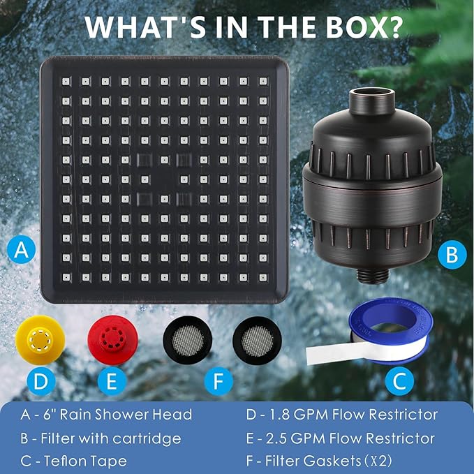 Voolan Filtered Shower Head - 20 Stage Luxury Rain Shower Filter For Hard Water for Remove Chlorine and Harmful Substances - 6" Square High Pressure Rainfall Showerhead (Oil Rubbed Bronze)