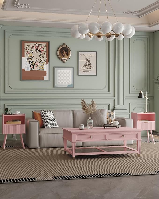 Nightstand,Modern Bedside Table with Storage Drawer and Open Wood Shelf, Accent Night Stand with Solid Wood Legs for Living Room, Bedroom and Small Spaces,Easy Assembly (Pink-Outlet)