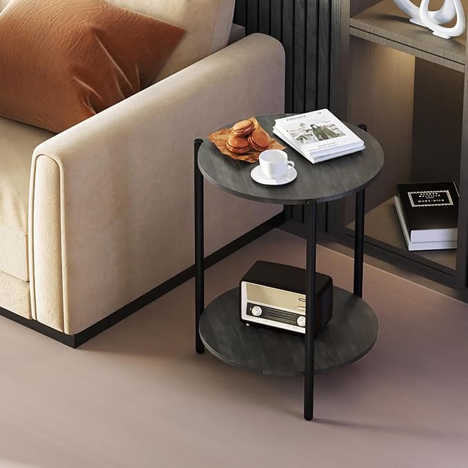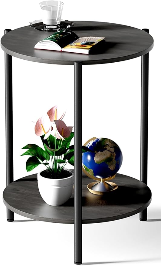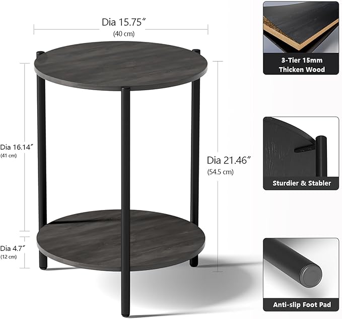 - 【2-Tier Storage】Kasrikly round side table 2-tier open design, perfect for storing books, magazines, and decorative items. The small table measures 15.75"D*21.46"H and has a total weight capacity of up to 40 lbs.