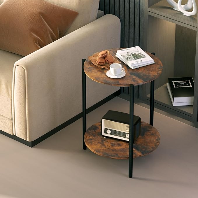 - 【2-Tier Storage】Kasrikly round side table 2-tier open design, perfect for storing books, magazines, and decorative items. The small table measures 15.75"D*21.46"H and has a total weight capacity of up to 40 lbs.