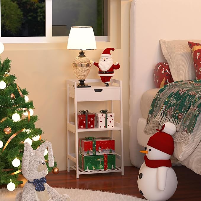 3 Tier Bamboo Bathroom Shelves with Drawer, Ladder Shelf for Bathroom Storage, Space-Saving Design, Stylish Display Nightstand, Stylish Storage Solution for Home, Living Room, Kitchen, Office