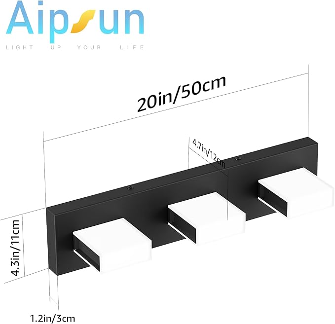 Aipsun Modern Bathroom Light Fixtures - 3 LED Vanity Lights for Over Mirror, White Light 6000K