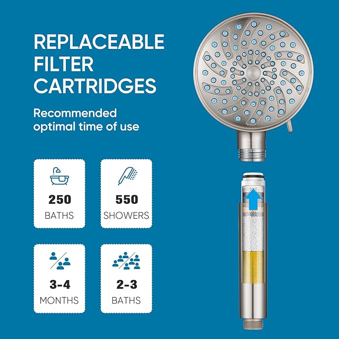 - Why Do You Need a Filtered Handheld Showerhead?: Chlorine is commonly used as a disinfectant in municipal water supplies, but inhaling chlorine during showers can cause dry skin, damaged hair, and respiratory issues. Additionally, water often contains heavy metals like lead, mercury, and cadmium, which can enter the supply through industrial pollution, aging pipes, or natural sources. Prolonged exposure can negatively impact your health. You need an effective filtered handheld showerhead to ensure a healthier shower experience!