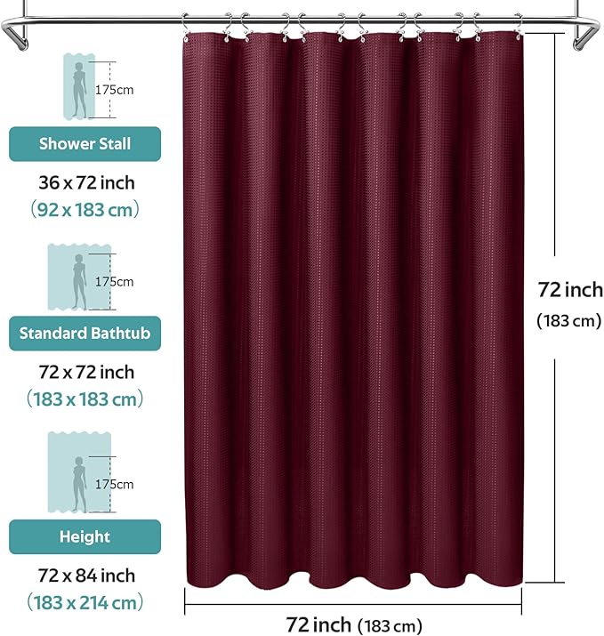 - Products Include: 1 Waffle Shower Curtain, 1 Shower Curtain Liner, 12 Double-sided Hooks. (Total 14 PCS)