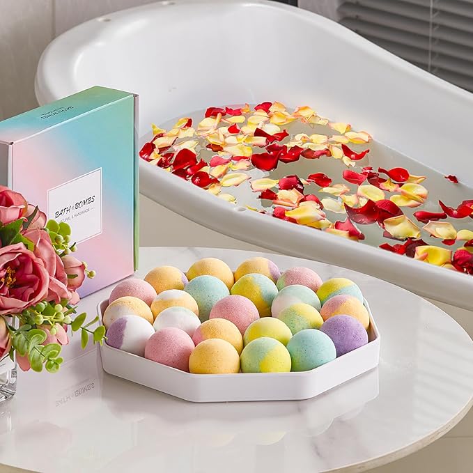 - RELAX AND REDUCE PRESSURE: Our Bath Bombs can help you to relax and unwind after busy day or as part of your regular home-spa treatment. all with longer-lasting perfuming effects, fizzling with colors, enjoy indulgent bubble-filled moments at home. You’ll love how refreshed and fragrant you feel afterward!